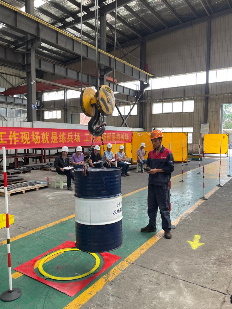 單梁行車組競賽項(xiàng)目,更突出了遵守安全操作規(guī)程的重要性。競賽內(nèi)容涵蓋了一些日常工作中非常重要,又很容易忽視的有關(guān)行車操作的安全問題。行車實(shí)操比賽要求每個(gè)選手按規(guī)定完成每個(gè)動(dòng)作,比如:檢查限位,試吊,穿越障礙物,跨越障礙物,吊鉤及遙控器歸位等。這不僅是一次技能操作大比拼,也是一次全員安全教育。